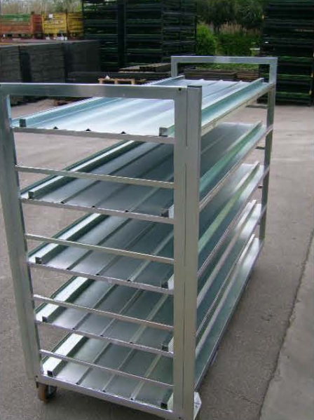 Carrello contenitore per industria in tubolare + lamiera forata